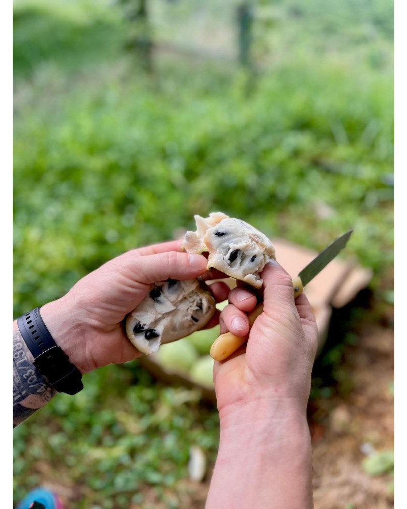 Each fruit is hand-picked at the perfect moment of ripeness, ensuring that only the best reaches your hands. After harvesting, the chirimoya is carefully packed to ensure it arrives fresh and in perfect condition to your home.